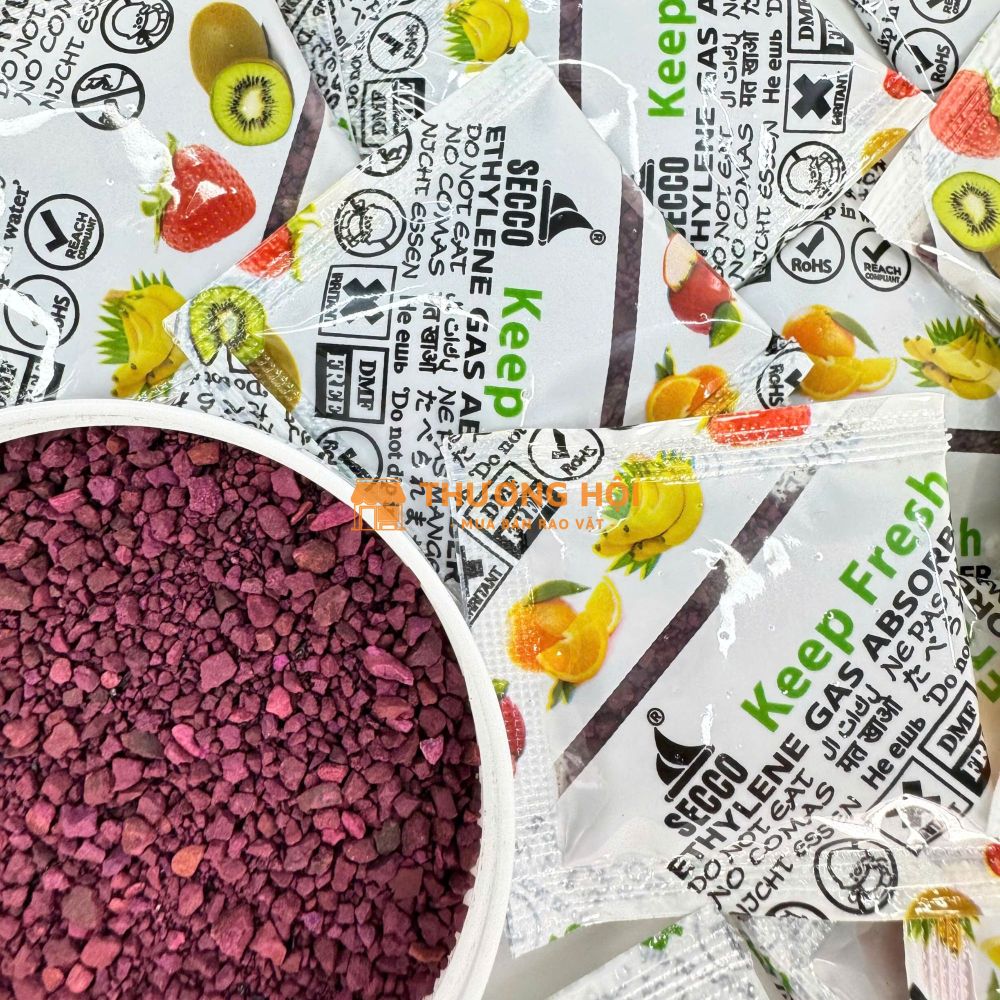 ✅ Loại bỏ khí Ethylene: Hấp thụ và trung hòa khí Ethylene cực nhanh, kéo dài tuổi thọ cho trái cây thêm 2-4 tuần.
